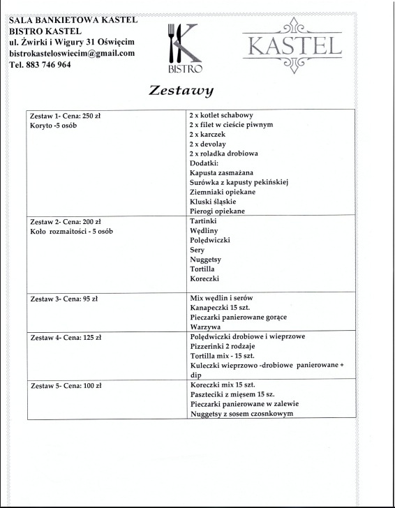 Specjalnie dla Naszych Gości, Restauracja Bistro Kastel przygotowała ofertę cateringową, w której każdy znajdzie coś odpowiedniego dla siebie.